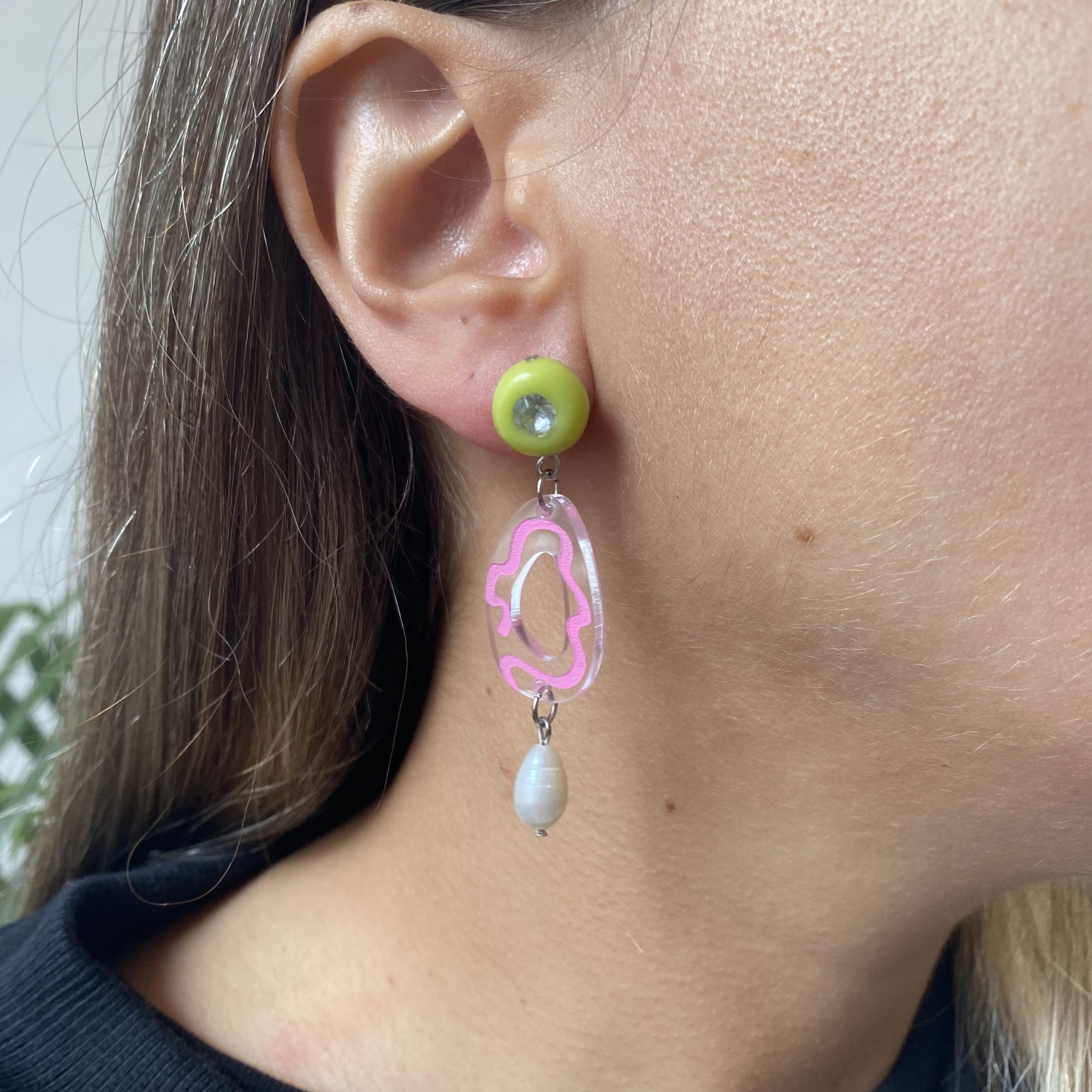 Estas piezas son de edición limitada. Realizada con Porcelana fría, acrílico, perlas de río natural, el pasador y los avíos son en acero quirúrgico.